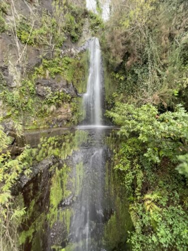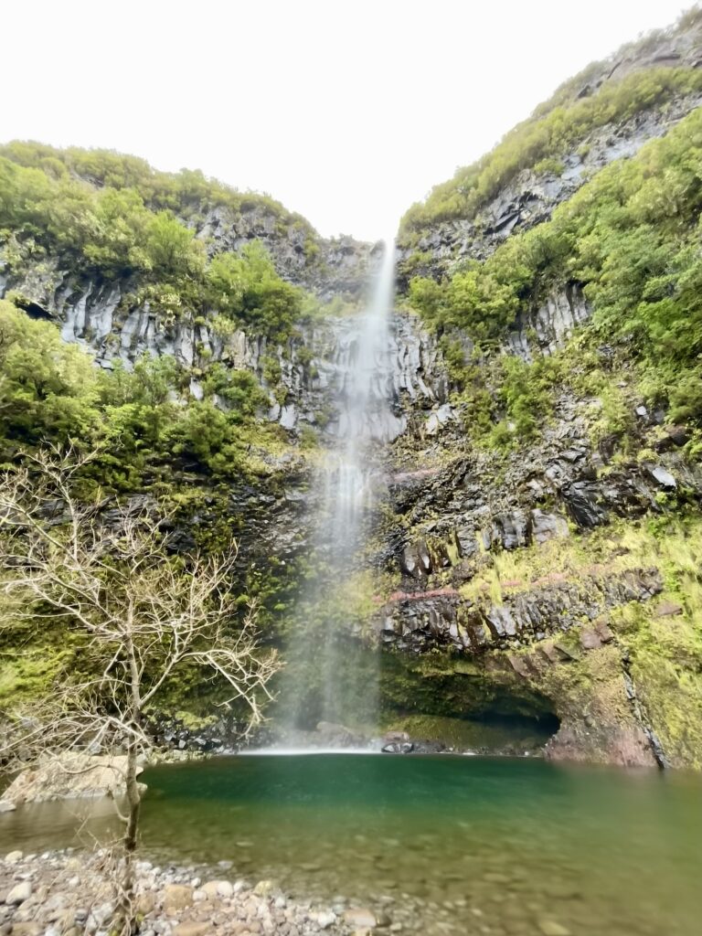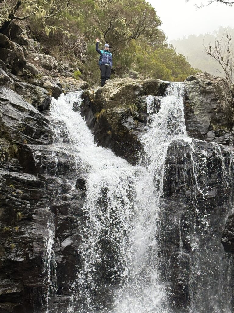 Nördlich von Calheta ging es auf knapp 1300 m zuerst, wie sollte es anders sein, an einer Levada entlang bis zu einem Wasserfall. Nach einer kurzen Pause ging es ein Stückchen zurück und dann begann sowas wie eine Wanderung. Es ging knapp 300 tm runter. Hauptsächlich über angelegte Naturtreppen. Weil ich etwas schneller war, als der Großteil der Gruppe, habe ich auf dem Weg noch einen Abstecher zu einem weiteren Wasserfall gemacht.