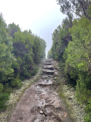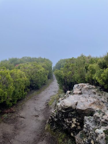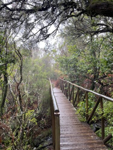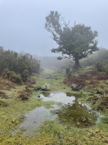 Am letzten Wandertag ging es nochmal hoch hinaus auf die Hochebene von Madeira (1330 m). Da ist es eigentlich immer nass und windig. Hatte ich erwähnt, dass ich keine wasserdichten Schuhe dabei hatte? Meine sind leider 4 Wochen vorher bei einer Wanderung kaputtgegangen – war plötzlich in beiden Schuhen nass – und so schnell habe ich keinen Ersatz gefunden